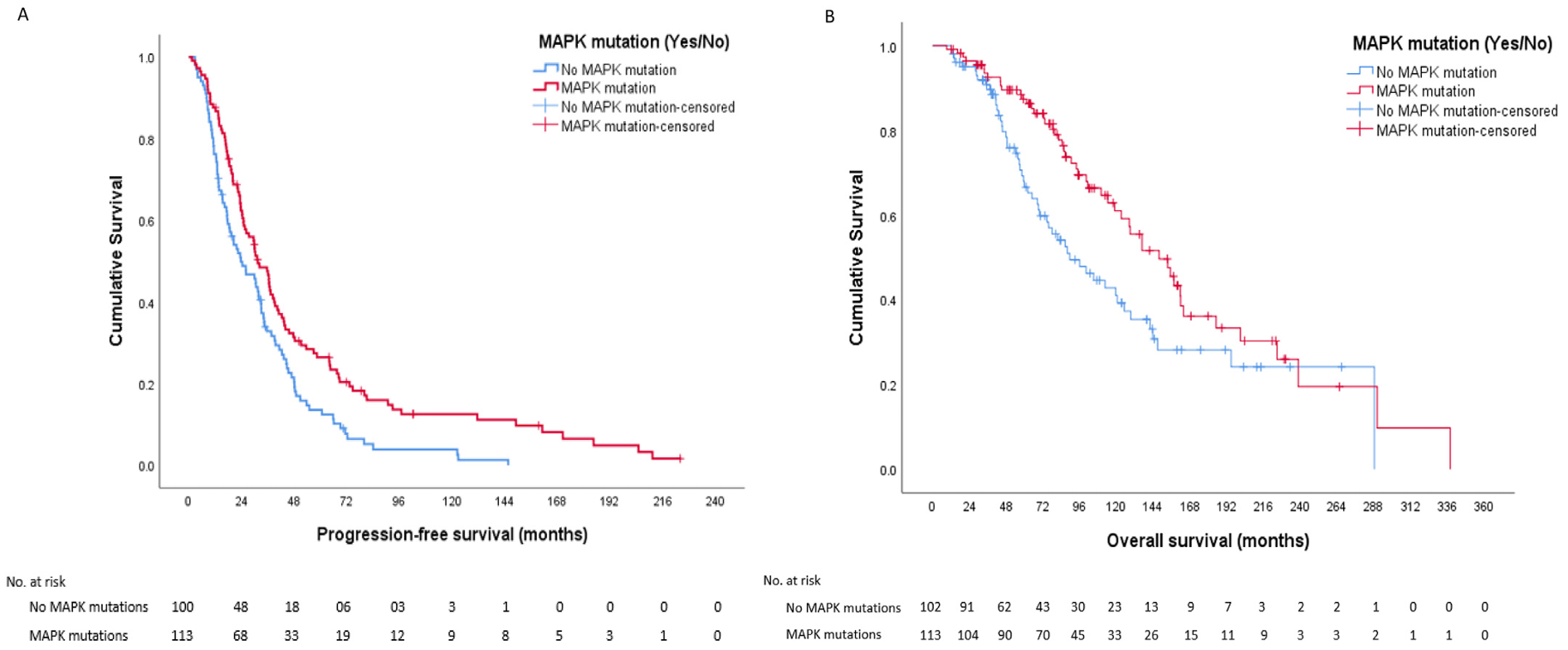 MAPK突變患者與未檢出MAPK突變患者的PFS和OS比較[6]